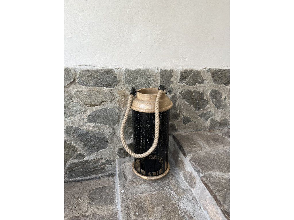 Lucerna z mangového dřeva a plechu. Elegantní doplněk, který přinese do Vašeho interiéru výrazný prvek. Lze použít čajovou svíčku nebo LED svíčku